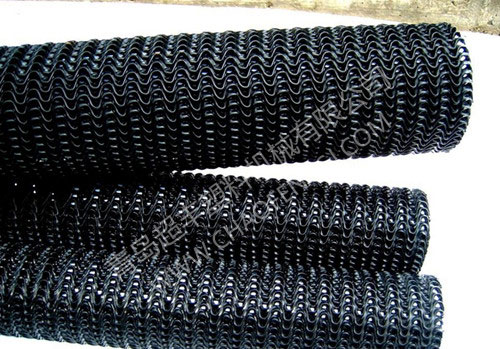 The plastic seepage pipe itself is made of a plurality of modified plastic wires with toughness, and there is no possibility of being crushed or destroyed. Under the pressure of 250kpa, the cross-sectional void ratio is still above 60%. Even if a large pressure is applied, there is always a water-passing gap, there is still 10-15% of the pores, and the recovery is good.